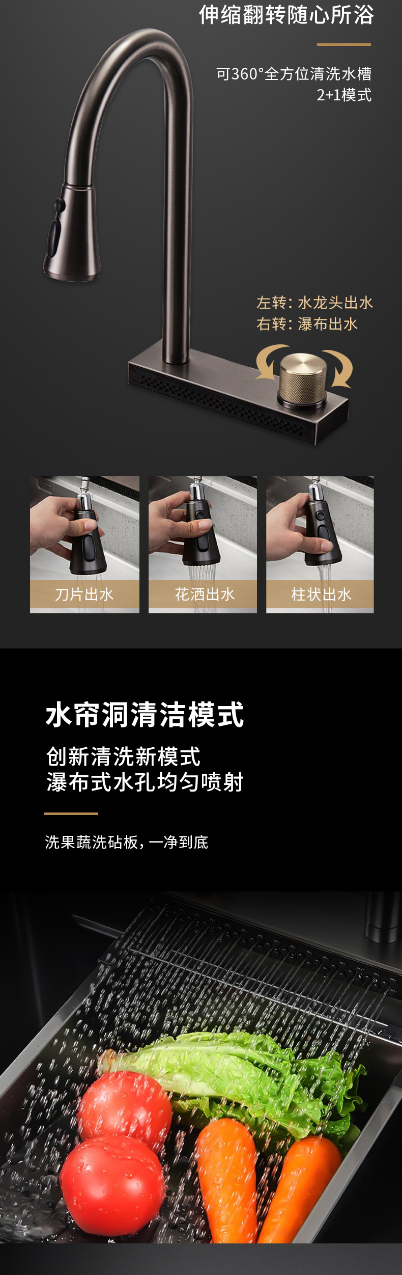 40L大容量水槽,可變伸縮式水龍頭,便捷洗杯器,洗碗機,主動強排設計