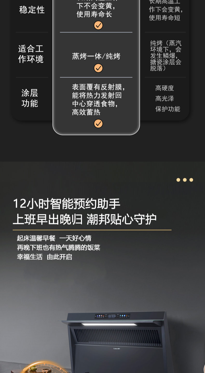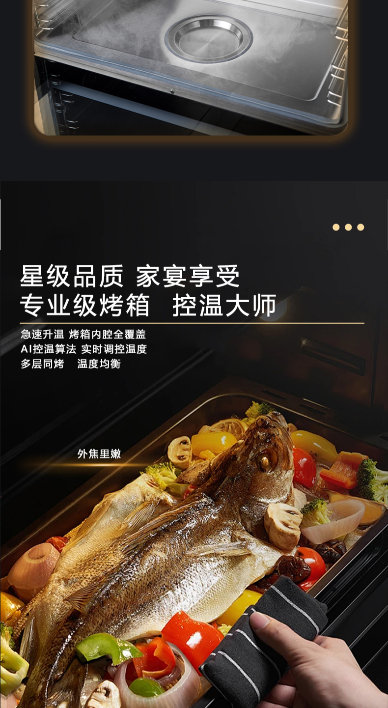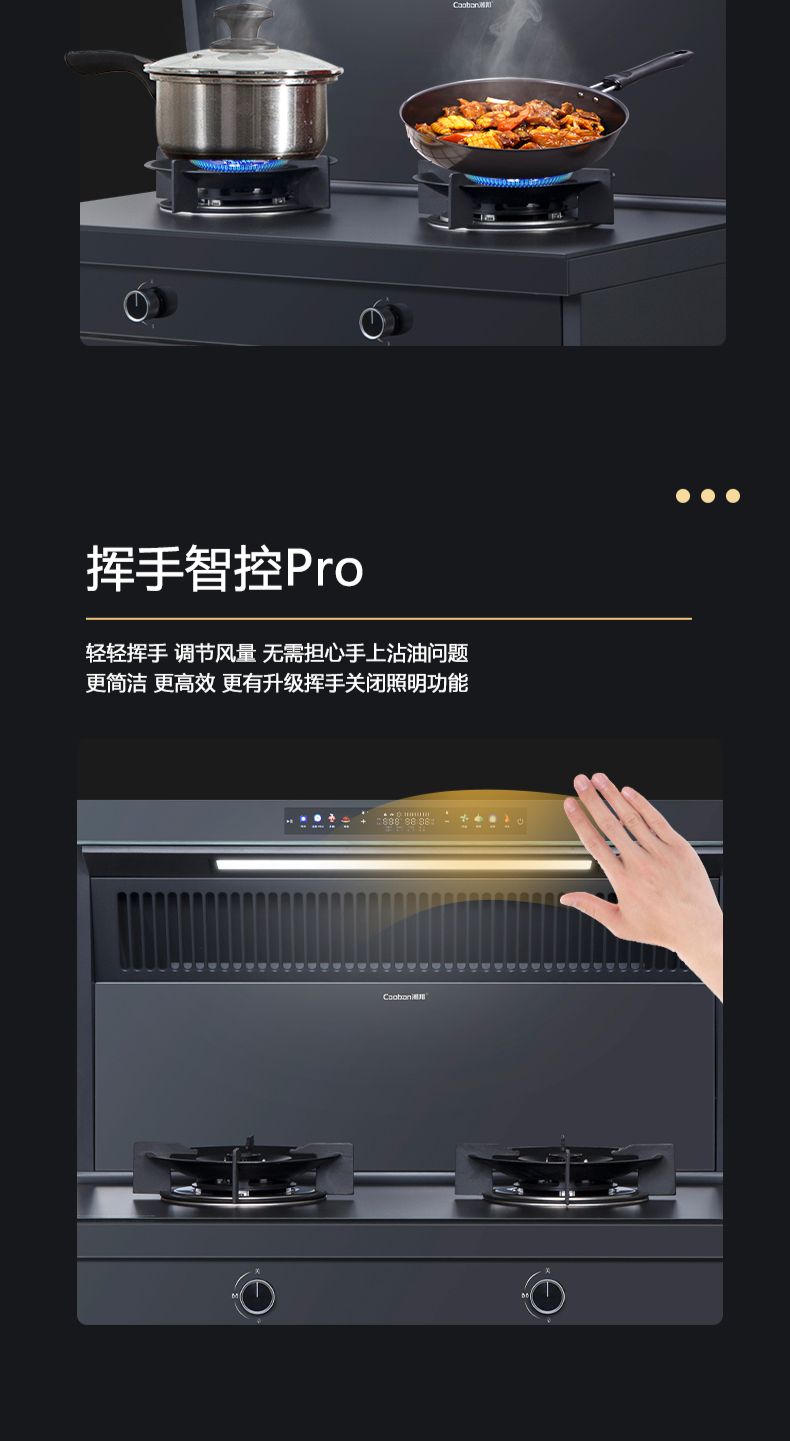 26方巡航風量,上蒸下烤新體驗,Cooking2 0智能彩屏,智能揮手感應Pro,雙灶定時熄火,碳素微晶面板,全新自清洗,十六大安全保護
